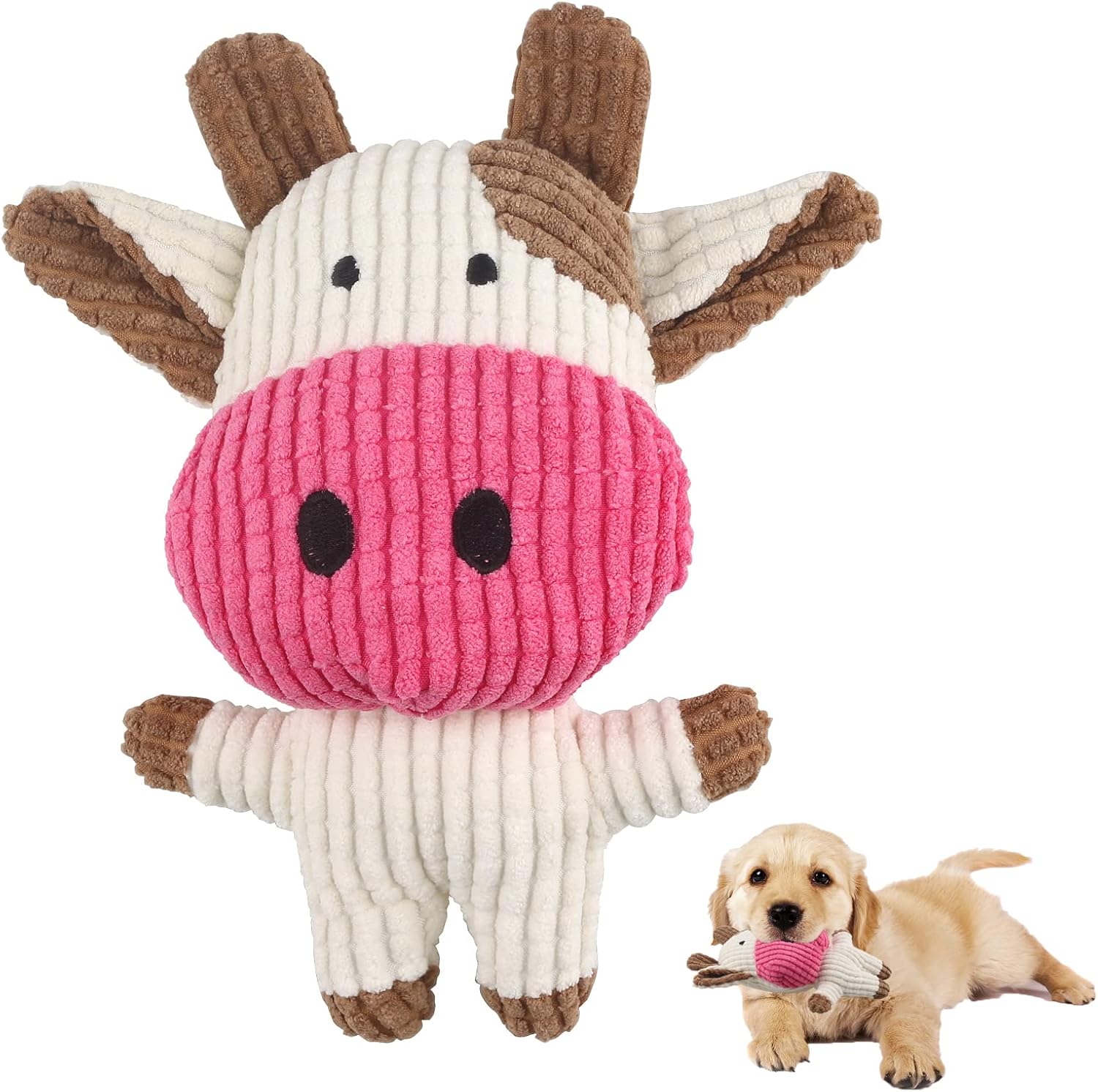 Elezenioc Dog Toys Durable Stuffed Squeaky Dog Toys Soft Toys For Small Medium Dogs Interactive Cuddly Puppy Plush Toys For Cleaning Teeth Brown Cow Amazon Co Uk Pet Supplies